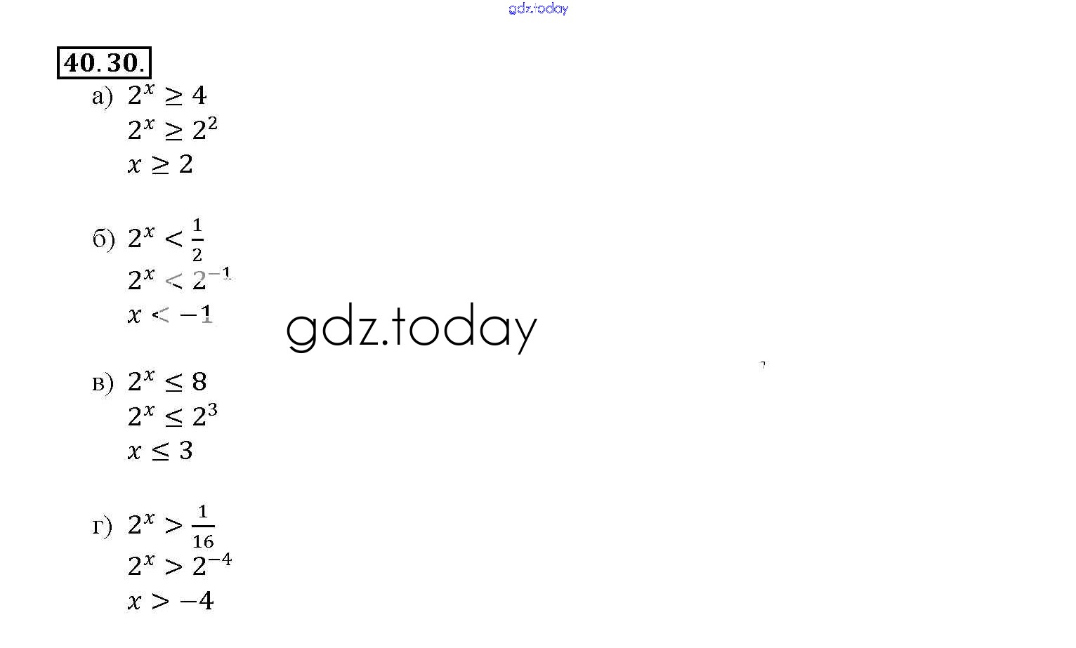 На страницах сайта gdz.today вы найдете учебный и вспомогательный материал, направленный на улучшения знаний школьной программы. ГДЗ - онлайн мир знаний §40. Показательные уравнения и неравенства Глава 7 40. 30 Задачнику по Алгебре для 10-11 класса Мордкович, Денищева Базовый уровень Мнемозина 2015