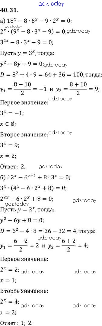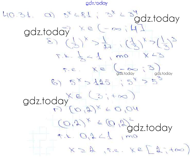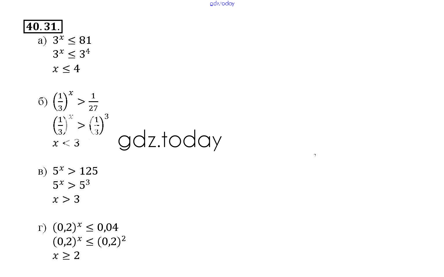 Ответы к §40. Показательные уравнения и неравенства Глава 7 40. 31 Задачнику по Алгебре для 10-11 класса Мордкович, Денищева Базовый уровень Мнемозина 2015