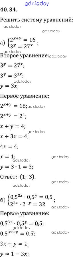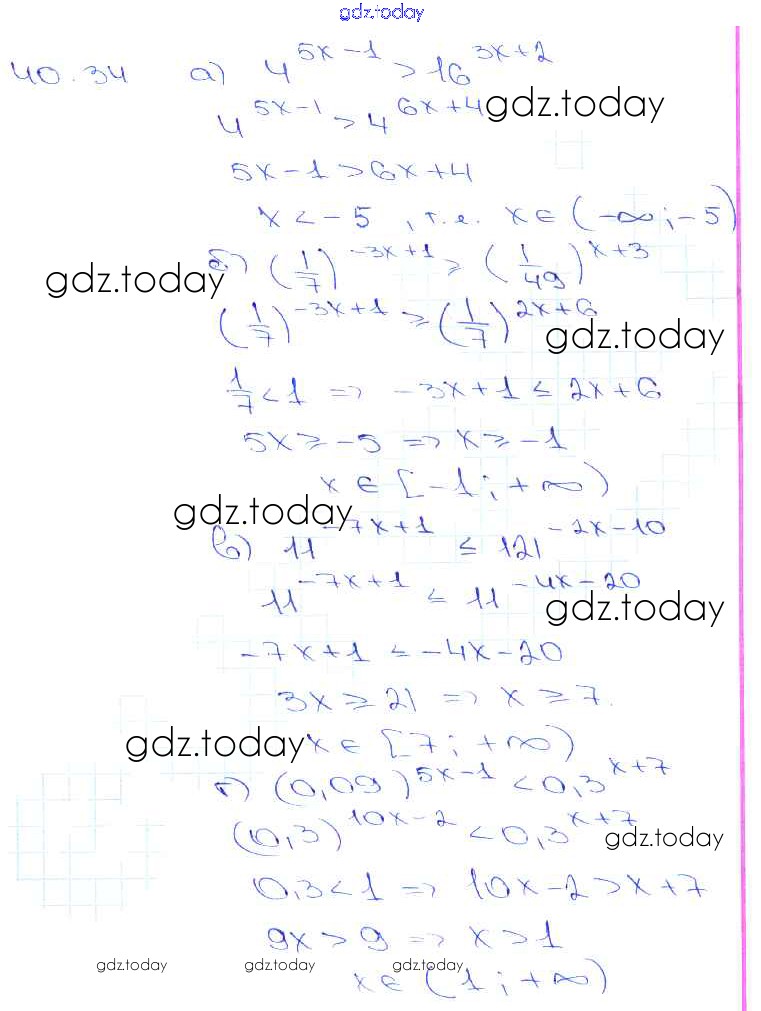 Ответы к §40. Показательные уравнения и неравенства Глава 7 40. 34 Задачнику по Алгебре для 10-11 класса Мордкович, Денищева Базовый уровень Мнемозина 2015