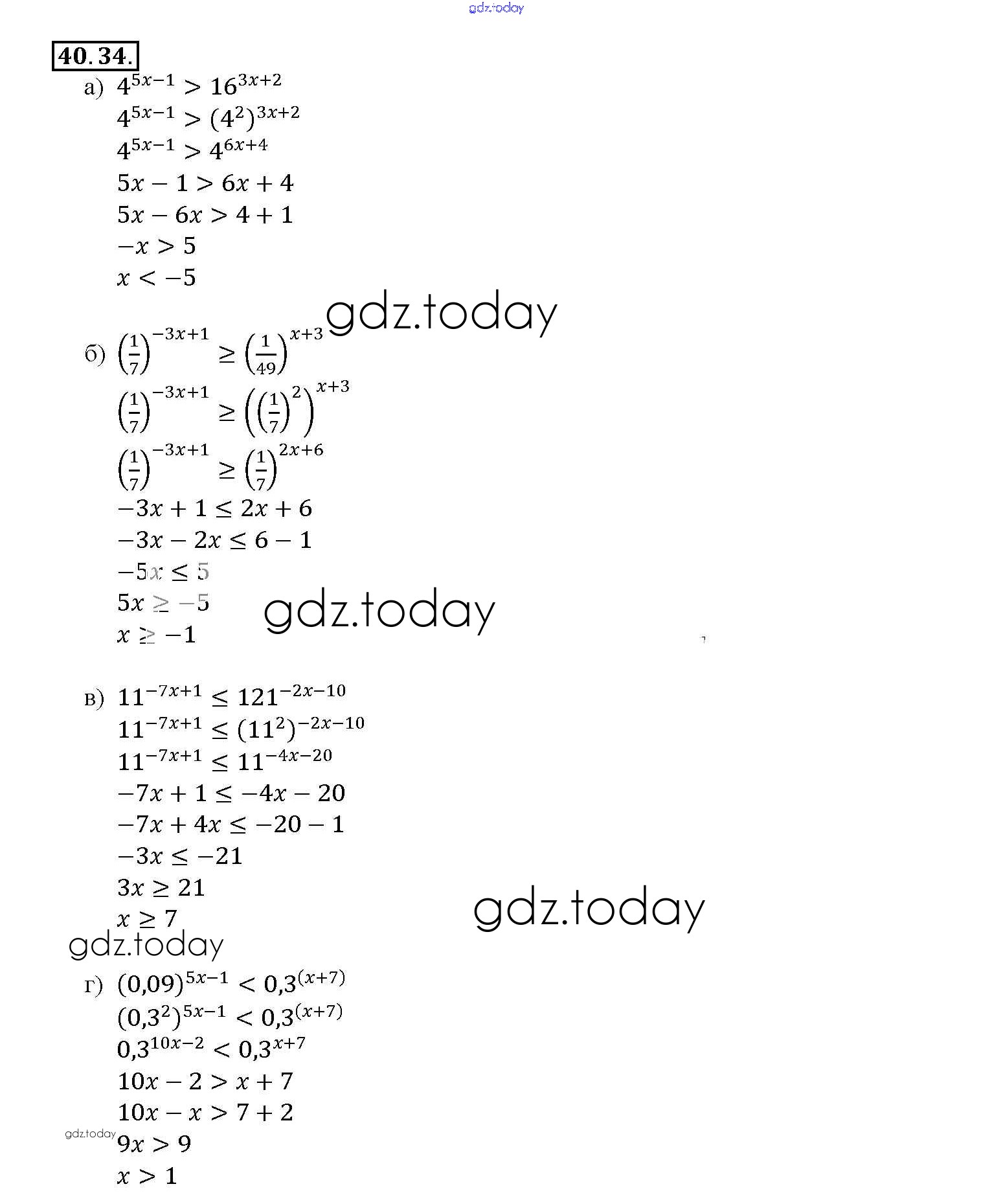 На страницах сайта gdz.today вы найдете учебный и вспомогательный материал, направленный на улучшения знаний школьной программы. ГДЗ - онлайн мир знаний §40. Показательные уравнения и неравенства Глава 7 40. 34 Задачнику по Алгебре для 10-11 класса Мордкович, Денищева Базовый уровень Мнемозина 2015