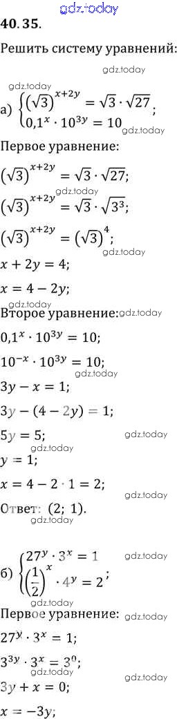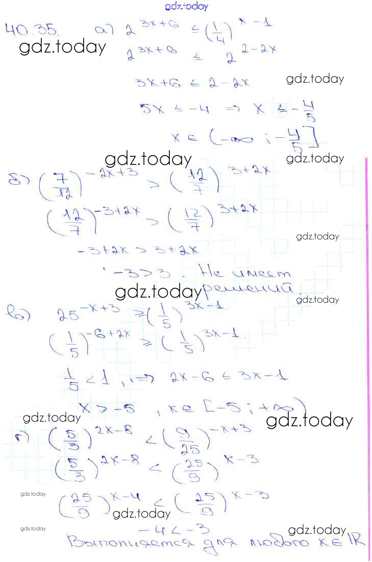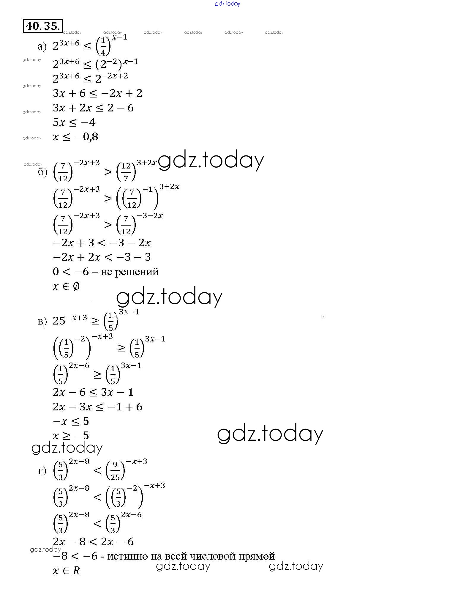 На страницах сайта gdz.today вы найдете учебный и вспомогательный материал, направленный на улучшения знаний школьной программы. ГДЗ - онлайн мир знаний §40. Показательные уравнения и неравенства Глава 7 40. 35 Задачнику по Алгебре для 10-11 класса Мордкович, Денищева Базовый уровень Мнемозина 2015
