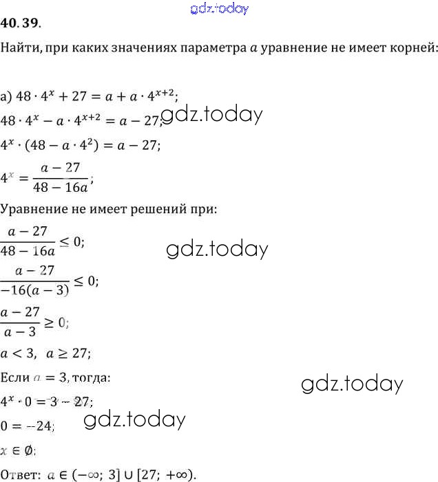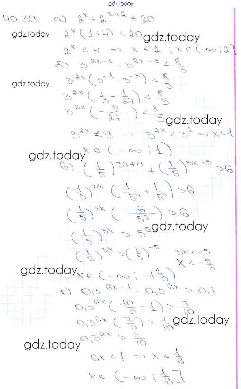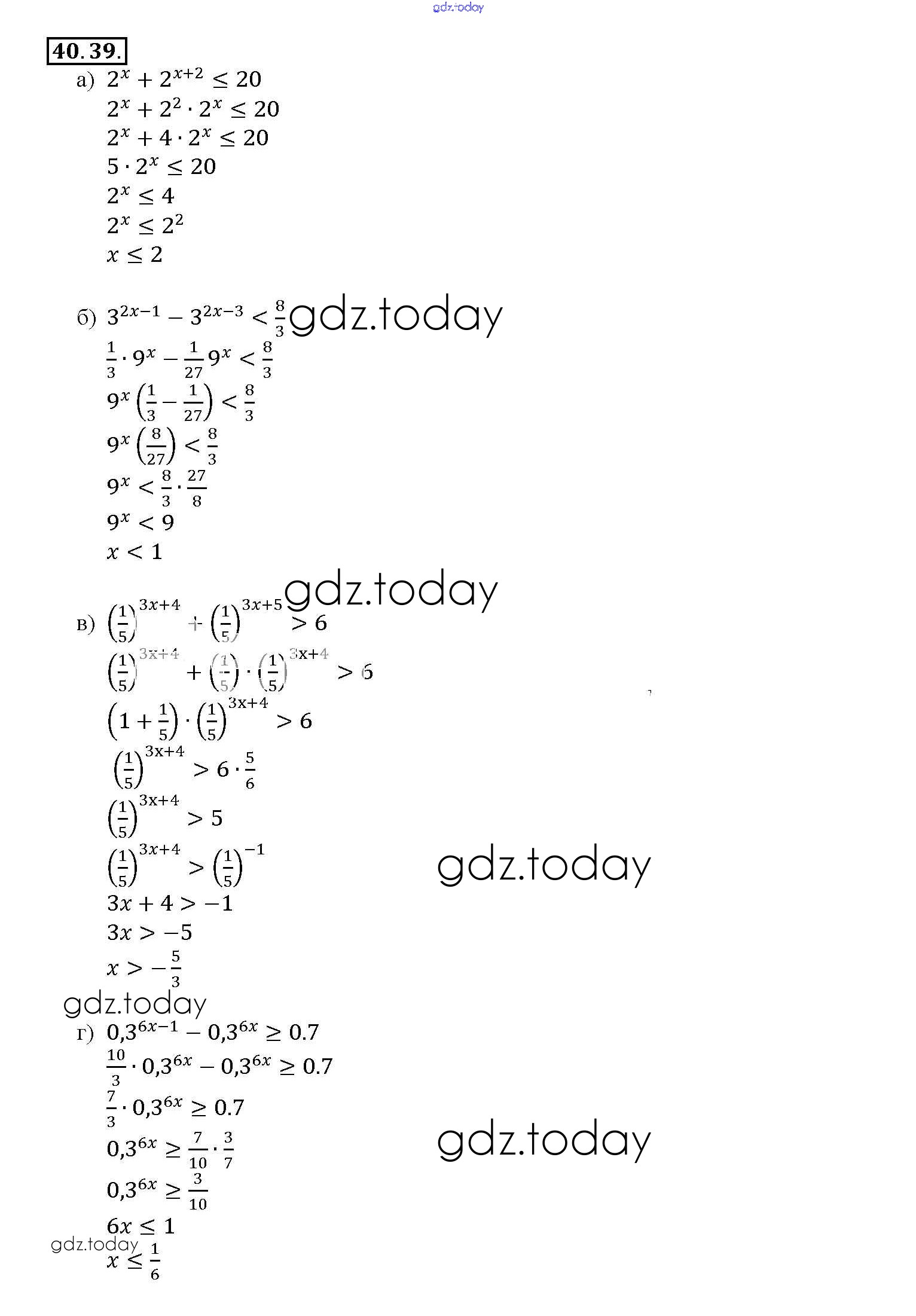 На страницах сайта gdz.today вы найдете учебный и вспомогательный материал, направленный на улучшения знаний школьной программы. ГДЗ - онлайн мир знаний §40. Показательные уравнения и неравенства Глава 7 40. 39 Задачнику по Алгебре для 10-11 класса Мордкович, Денищева Базовый уровень Мнемозина 2015