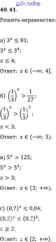 Ответы к §40. Показательные уравнения и неравенства Глава 7 40. 41 Задачнику по Алгебре для 10-11 класса Мордкович, Денищева Базовый уровень Мнемозина 2015