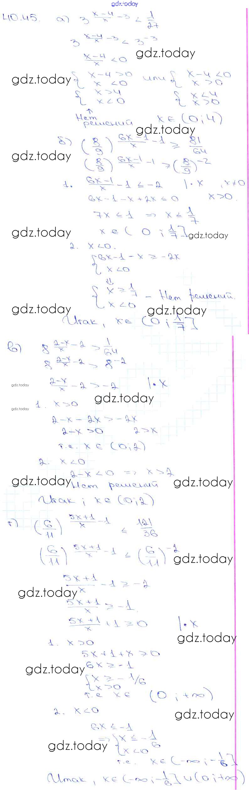 На страницах сайта gdz.today вы найдете учебный и вспомогательный материал, направленный на улучшения знаний школьной программы. ГДЗ - онлайн мир знаний §40. Показательные уравнения и неравенства Глава 7 40. 45 Задачнику по Алгебре для 10-11 класса Мордкович, Денищева Базовый уровень Мнемозина 2015