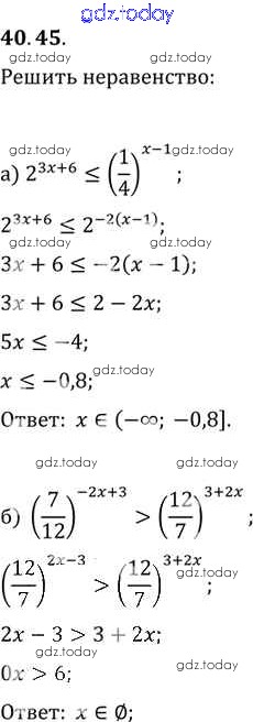 Ответы к §40. Показательные уравнения и неравенства Глава 7 40. 45 Задачнику по Алгебре для 10-11 класса Мордкович, Денищева Базовый уровень Мнемозина 2015
