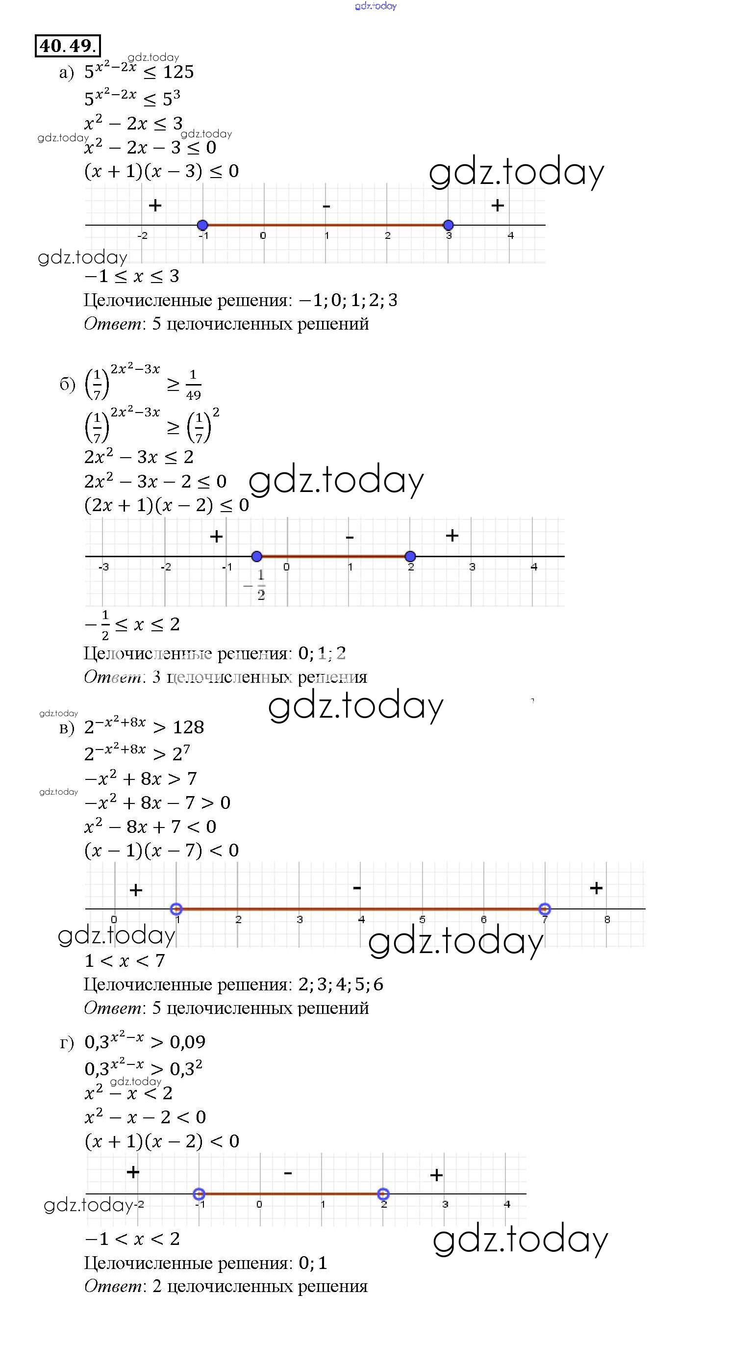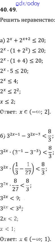 Ответы к §40. Показательные уравнения и неравенства Глава 7 40. 49 Задачнику по Алгебре для 10-11 класса Мордкович, Денищева Базовый уровень Мнемозина 2015