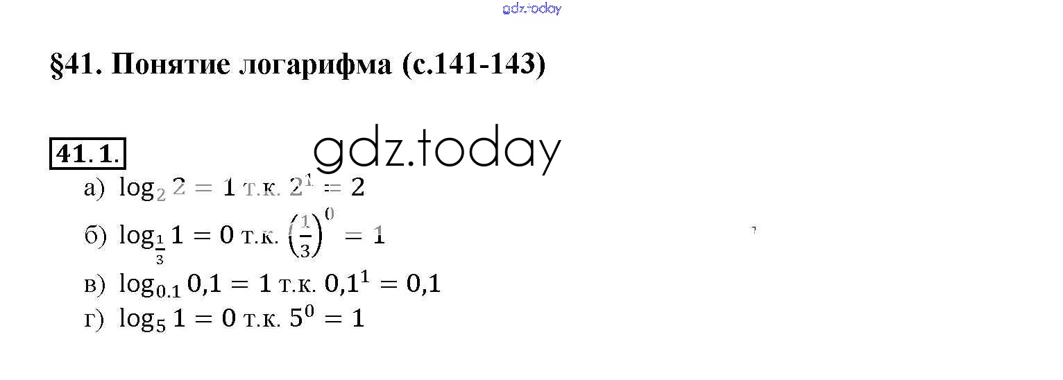 На страницах сайта gdz.today вы найдете учебный и вспомогательный материал, направленный на улучшения знаний школьной программы. ГДЗ - онлайн мир знаний §41. Понятие логарифма Глава 7 41. 1 Задачнику по Алгебре для 10-11 класса Мордкович, Денищева Базовый уровень Мнемозина 2015
