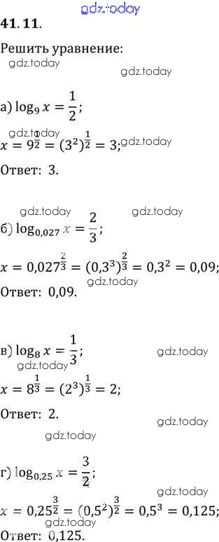 Ответы к §41. Понятие логарифма Глава 7 41. 11 Задачнику по Алгебре для 10-11 класса Мордкович, Денищева Базовый уровень Мнемозина 2015