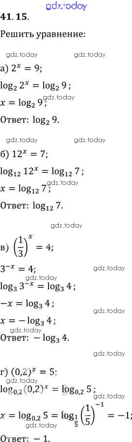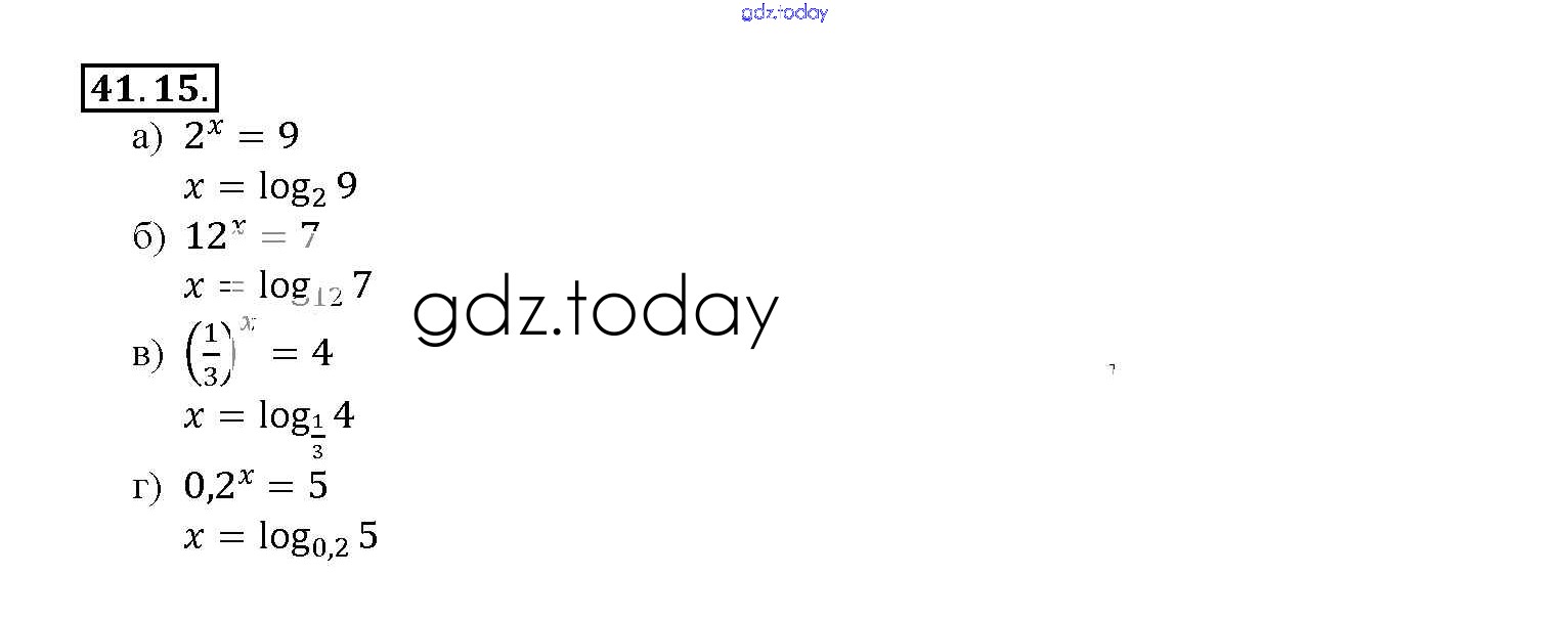 На страницах сайта gdz.today вы найдете учебный и вспомогательный материал, направленный на улучшения знаний школьной программы. ГДЗ - онлайн мир знаний §41. Понятие логарифма Глава 7 41. 15 Задачнику по Алгебре для 10-11 класса Мордкович, Денищева Базовый уровень Мнемозина 2015