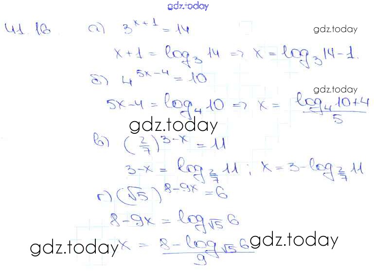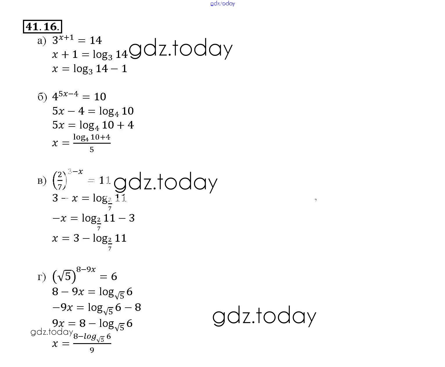На страницах сайта gdz.today вы найдете учебный и вспомогательный материал, направленный на улучшения знаний школьной программы. ГДЗ - онлайн мир знаний §41. Понятие логарифма Глава 7 41. 16 Задачнику по Алгебре для 10-11 класса Мордкович, Денищева Базовый уровень Мнемозина 2015