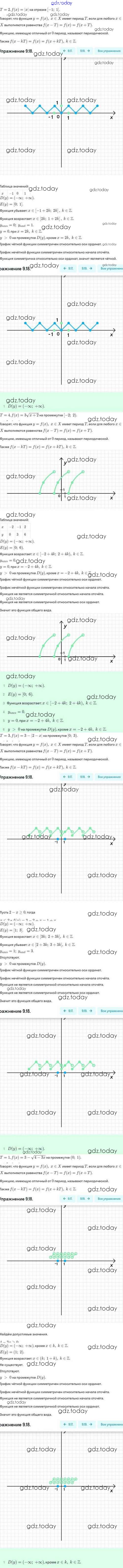 На страницах сайта gdz.today вы найдете учебный и вспомогательный материал, направленный на улучшения знаний школьной программы. ГДЗ - онлайн мир знаний Решение. §9. Периодические функции 9.18 Задачнику по Алгебре для 10 класса Мордкович, Семёнов Базовый и углубленный уровень Мнемозина 2017