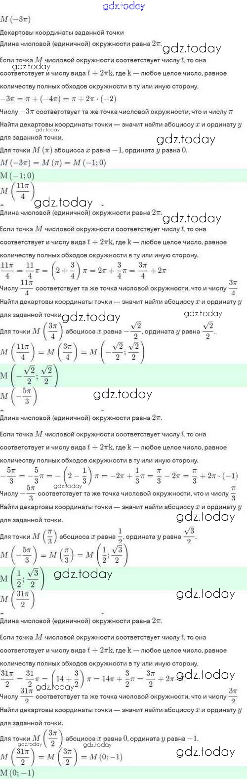 Ответы к Решение. §12. Числовая окружность на координатной плоскости 12.2 Задачнику по Алгебре для 10 класса Мордкович, Семёнов Базовый и углубленный уровень Мнемозина 2017