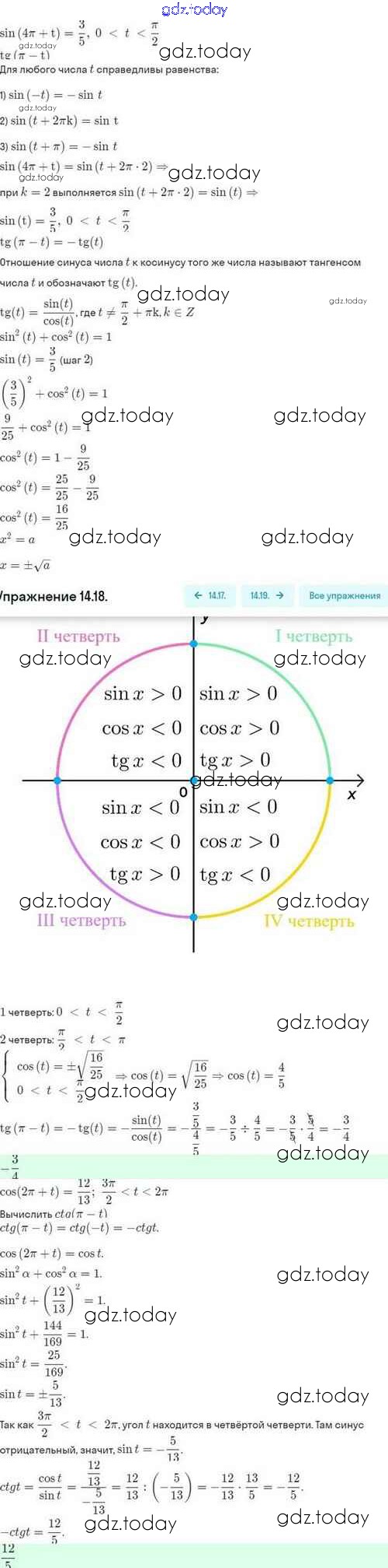 На страницах сайта gdz.today вы найдете учебный и вспомогательный материал, направленный на улучшения знаний школьной программы. ГДЗ - онлайн мир знаний Решение. §14. Тригонометрические функции числового аргумента 14.18 Задачнику по Алгебре для 10 класса Мордкович, Семёнов Базовый и углубленный уровень Мнемозина 2017