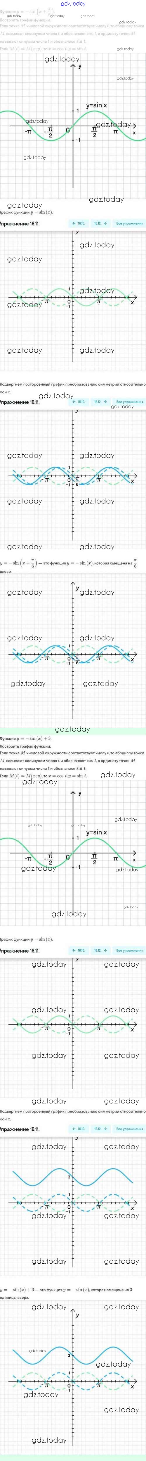 На страницах сайта gdz.today вы найдете учебный и вспомогательный материал, направленный на улучшения знаний школьной программы. ГДЗ - онлайн мир знаний Решение. §16. Функции y=sinx, y=cosx, их свойства и графики 16.11 Задачнику по Алгебре для 10 класса Мордкович, Семёнов Базовый и углубленный уровень Мнемозина 2017