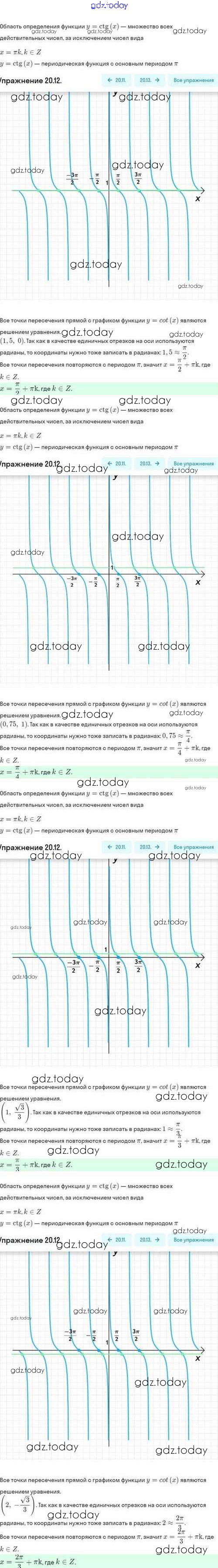 Ответы к Решение. §20. Функции y=tgx, y=ctgx, их свойства и графики 20.12 Задачнику по Алгебре для 10 класса Мордкович, Семёнов Базовый и углубленный уровень Мнемозина 2017