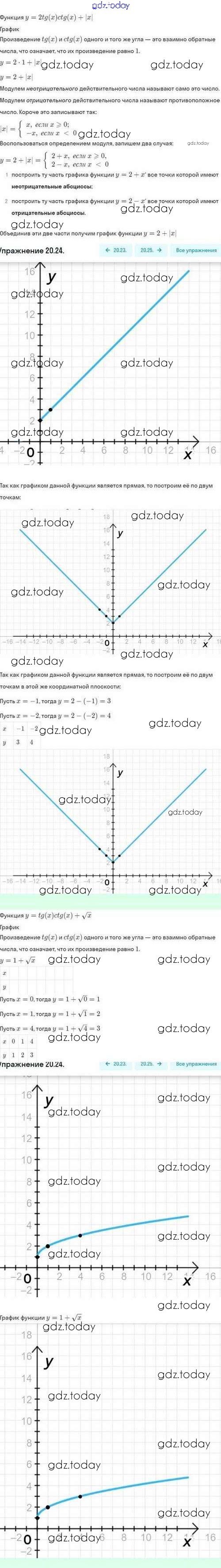 На страницах сайта gdz.today вы найдете учебный и вспомогательный материал, направленный на улучшения знаний школьной программы. ГДЗ - онлайн мир знаний Решение. §20. Функции y=tgx, y=ctgx, их свойства и графики 20.24 Задачнику по Алгебре для 10 класса Мордкович, Семёнов Базовый и углубленный уровень Мнемозина 2017