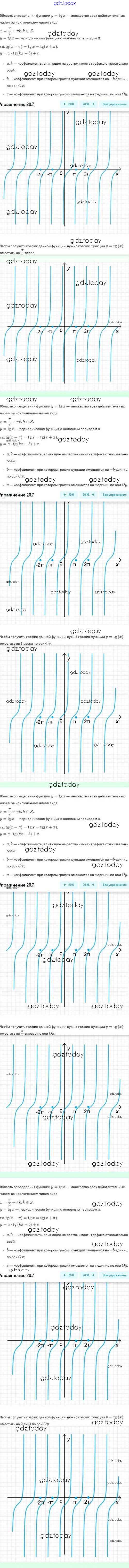 На страницах сайта gdz.today вы найдете учебный и вспомогательный материал, направленный на улучшения знаний школьной программы. ГДЗ - онлайн мир знаний Решение. §20. Функции y=tgx, y=ctgx, их свойства и графики 20.7 Задачнику по Алгебре для 10 класса Мордкович, Семёнов Базовый и углубленный уровень Мнемозина 2017