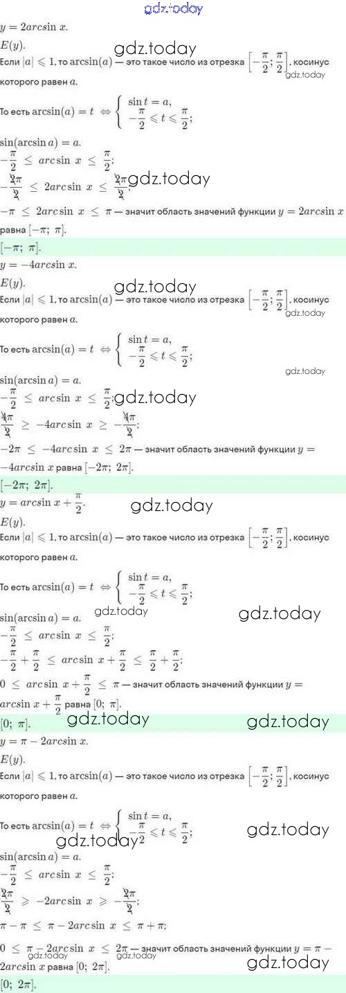 Ответы к Решение. §21. Обратные тригонометрические функции 21.5 Задачнику по Алгебре для 10 класса Мордкович, Семёнов Базовый и углубленный уровень Мнемозина 2017