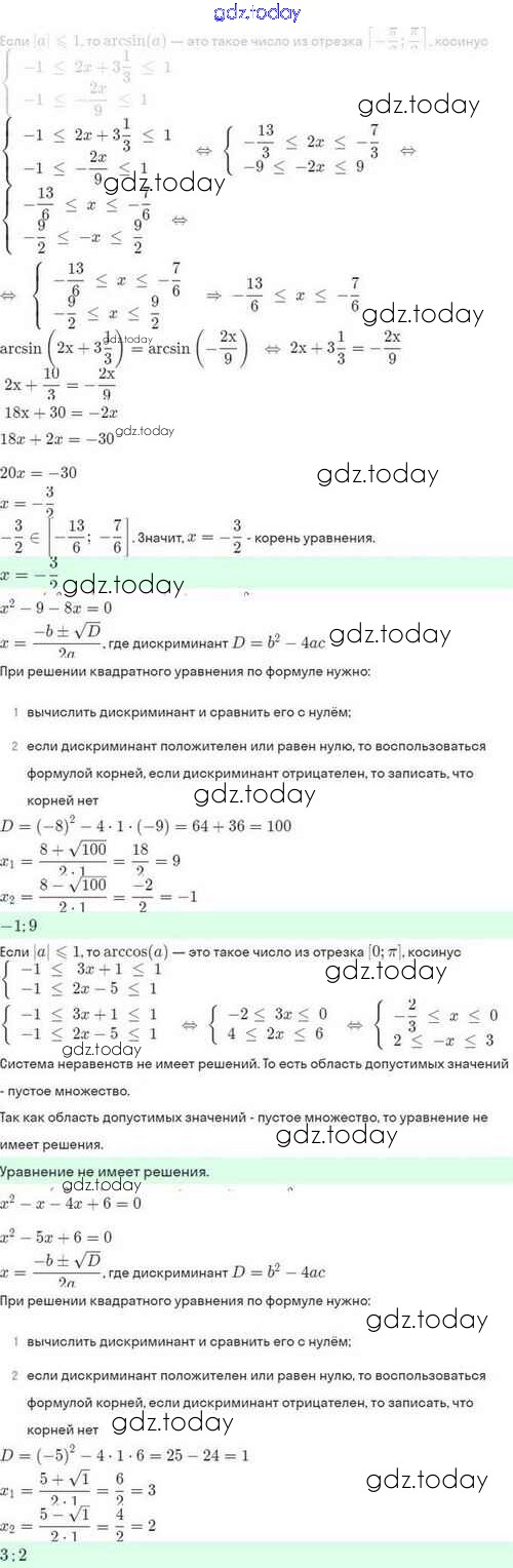 Ответы к Решение. §21. Обратные тригонометрические функции 21.58 Задачнику по Алгебре для 10 класса Мордкович, Семёнов Базовый и углубленный уровень Мнемозина 2017