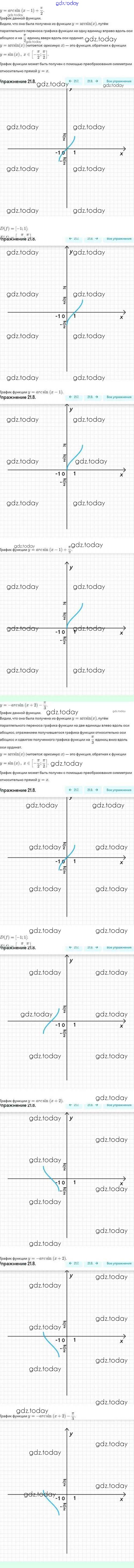 На страницах сайта gdz.today вы найдете учебный и вспомогательный материал, направленный на улучшения знаний школьной программы. ГДЗ - онлайн мир знаний Решение. §21. Обратные тригонометрические функции 21.8 Задачнику по Алгебре для 10 класса Мордкович, Семёнов Базовый и углубленный уровень Мнемозина 2017