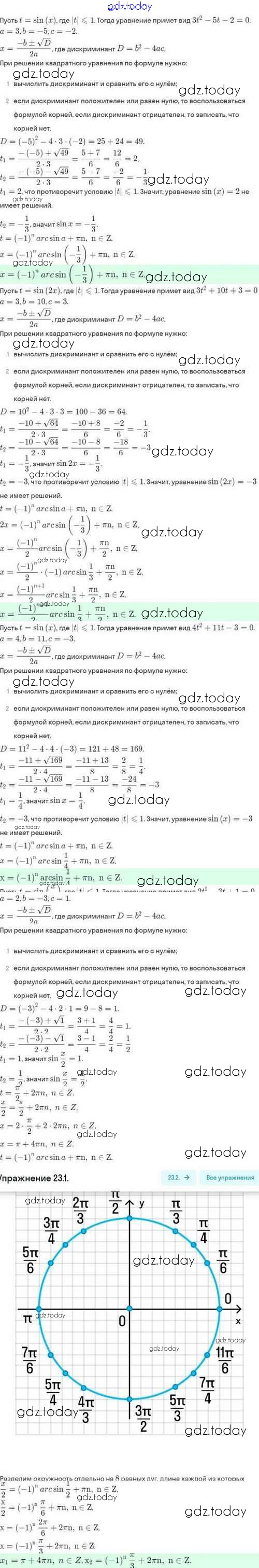 Ответы к Решение. §23. Методы решения тригонометрических уравнений 23.1 Задачнику по Алгебре для 10 класса Мордкович, Семёнов Базовый и углубленный уровень Мнемозина 2017