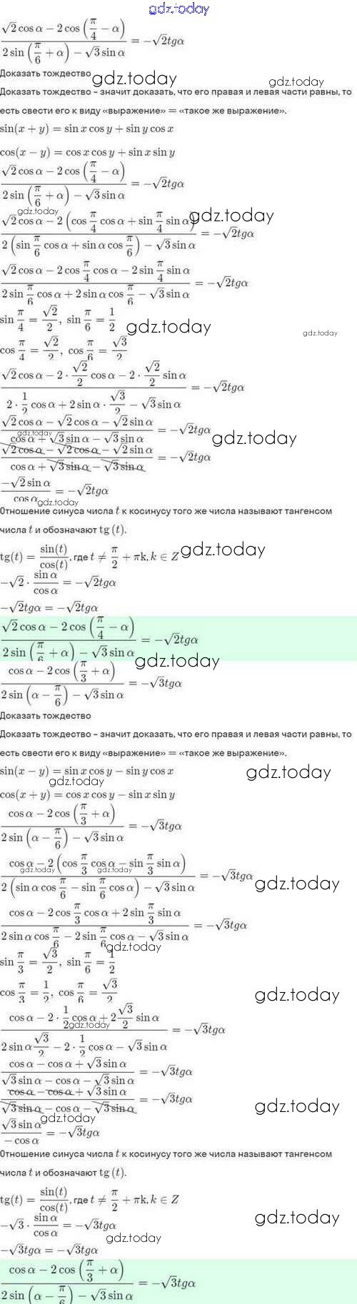 Ответы к Решение. §24. Синус и косинус суммы и разности аргументов 24.12 Задачнику по Алгебре для 10 класса Мордкович, Семёнов Базовый и углубленный уровень Мнемозина 2017