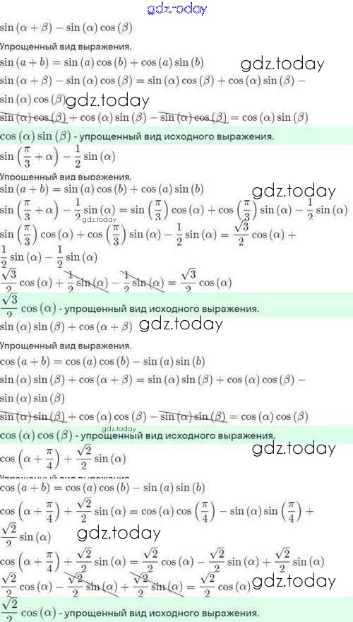 На страницах сайта gdz.today вы найдете учебный и вспомогательный материал, направленный на улучшения знаний школьной программы. ГДЗ - онлайн мир знаний Решение. §24. Синус и косинус суммы и разности аргументов 24.3 Задачнику по Алгебре для 10 класса Мордкович, Семёнов Базовый и углубленный уровень Мнемозина 2017
