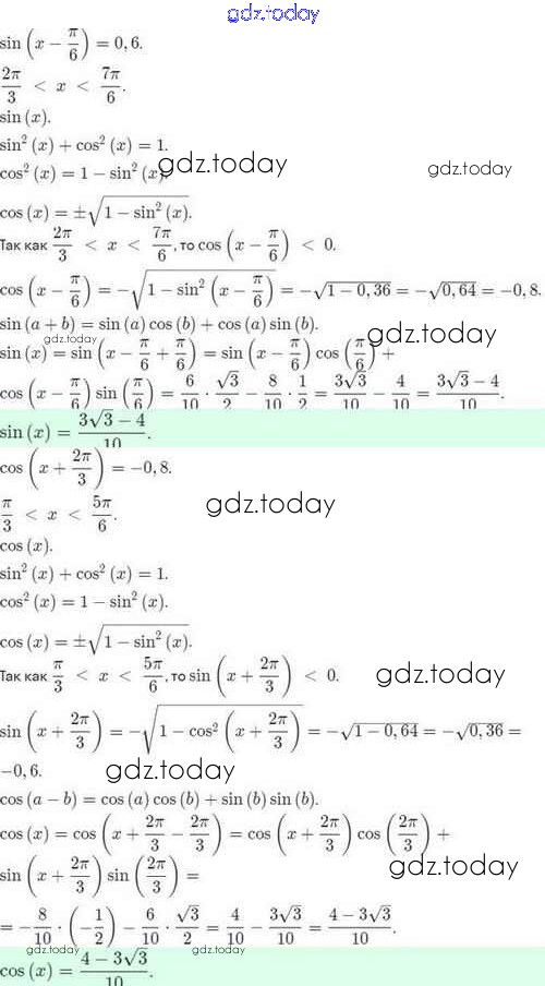 Ответы к Решение. §24. Синус и косинус суммы и разности аргументов 24.40 Задачнику по Алгебре для 10 класса Мордкович, Семёнов Базовый и углубленный уровень Мнемозина 2017