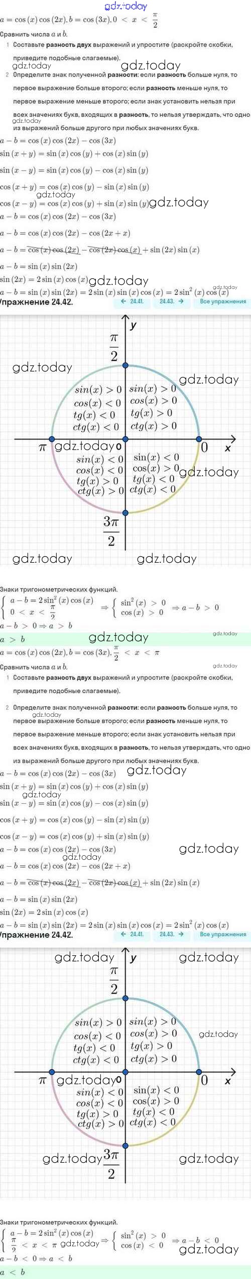 На страницах сайта gdz.today вы найдете учебный и вспомогательный материал, направленный на улучшения знаний школьной программы. ГДЗ - онлайн мир знаний Решение. §24. Синус и косинус суммы и разности аргументов 24.42 Задачнику по Алгебре для 10 класса Мордкович, Семёнов Базовый и углубленный уровень Мнемозина 2017