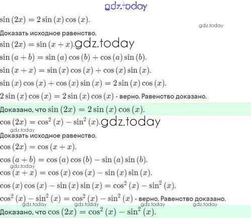 На страницах сайта gdz.today вы найдете учебный и вспомогательный материал, направленный на улучшения знаний школьной программы. ГДЗ - онлайн мир знаний Решение. §24. Синус и косинус суммы и разности аргументов 24.7 Задачнику по Алгебре для 10 класса Мордкович, Семёнов Базовый и углубленный уровень Мнемозина 2017