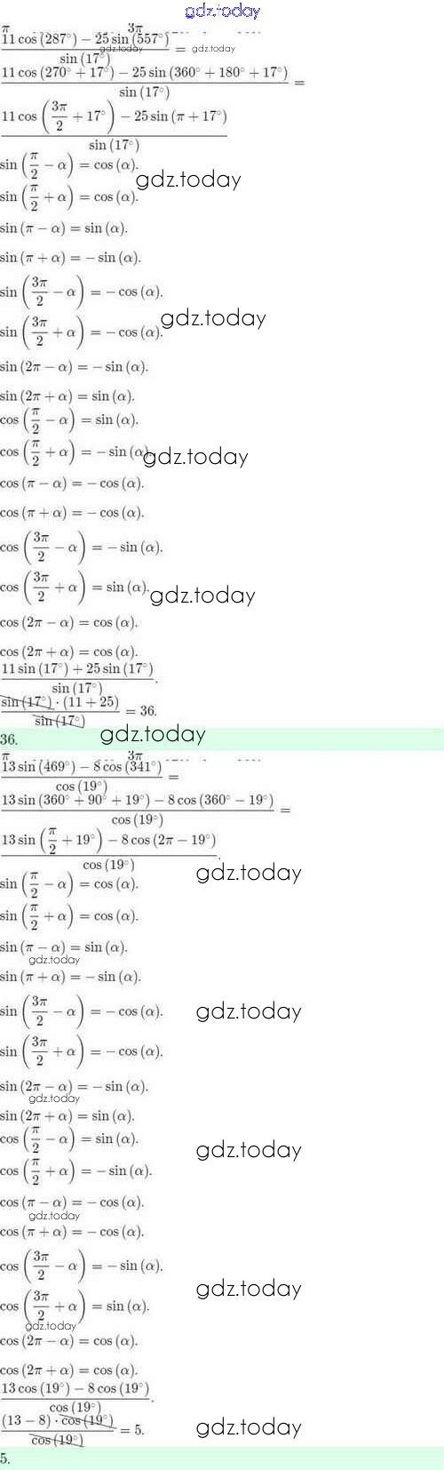 Ответы к Решение. §26. Формулы приведения 26.14 Задачнику по Алгебре для 10 класса Мордкович, Семёнов Базовый и углубленный уровень Мнемозина 2017