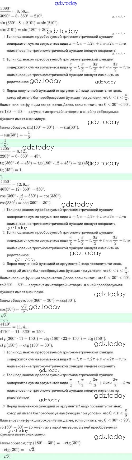 Ответы к Решение. §26. Формулы приведения 26.7 Задачнику по Алгебре для 10 класса Мордкович, Семёнов Базовый и углубленный уровень Мнемозина 2017