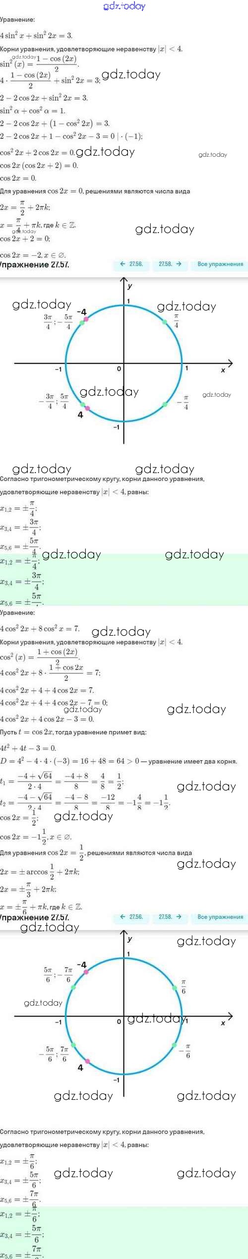 Ответы к Решение. §27. Формулы двойного аргумента. Формулы понижения степени 27.57 Задачнику по Алгебре для 10 класса Мордкович, Семёнов Базовый и углубленный уровень Мнемозина 2017