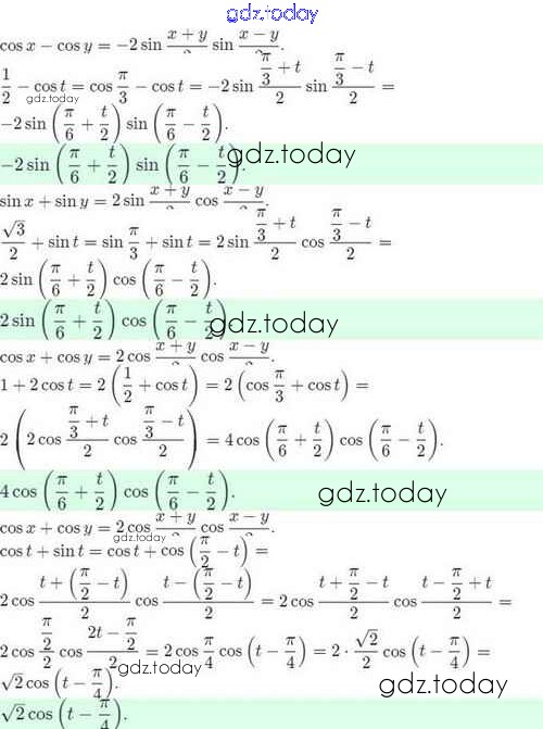 Ответы к Решение. §28. Преобразование суммы тригонометрических функций в произведение 28.7 Задачнику по Алгебре для 10 класса Мордкович, Семёнов Базовый и углубленный уровень Мнемозина 2017