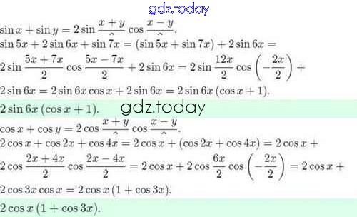 Ответы к Решение. §28. Преобразование суммы тригонометрических функций в произведение 28.8 Задачнику по Алгебре для 10 класса Мордкович, Семёнов Базовый и углубленный уровень Мнемозина 2017