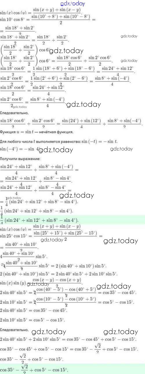 Ответы к Решение. §29. Преобразование произведения тригонометрических функций в сумму 29.4 Задачнику по Алгебре для 10 класса Мордкович, Семёнов Базовый и углубленный уровень Мнемозина 2017