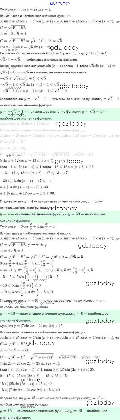 Ответы к Решение. §30. Преобразование выражения Asinx+Bcosx к виду Csin(x+t) 30.10 Задачнику по Алгебре для 10 класса Мордкович, Семёнов Базовый и углубленный уровень Мнемозина 2017