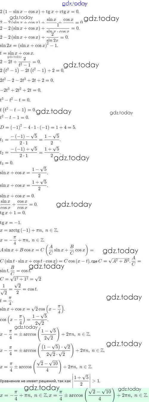 Ответы к Решение. §31. Методы решения тригонометрических уравнений 31.22 Задачнику по Алгебре для 10 класса Мордкович, Семёнов Базовый и углубленный уровень Мнемозина 2017