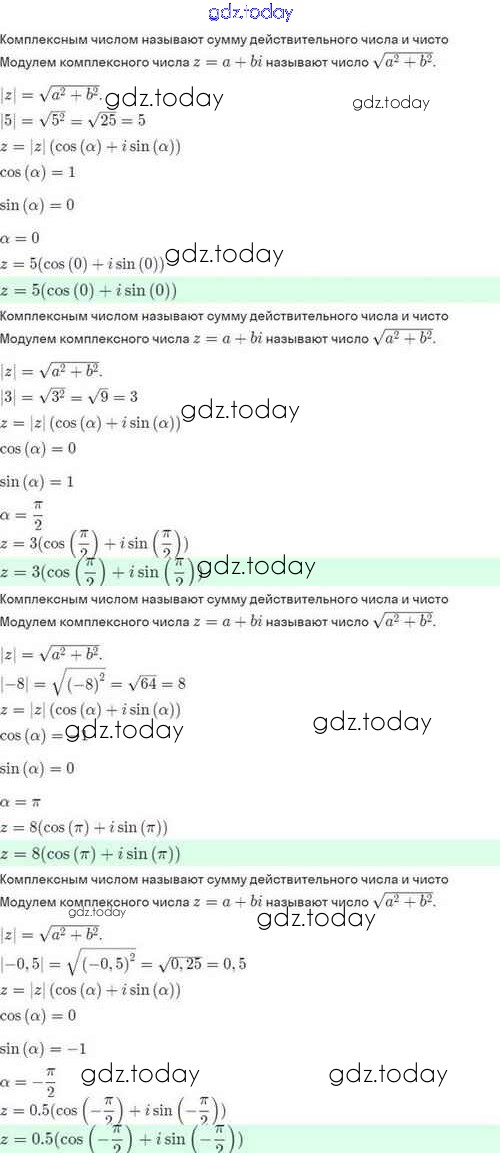 Ответы к Решение. §34. Тригонометрическая формула записи комплексного числа 34.21 Задачнику по Алгебре для 10 класса Мордкович, Семёнов Базовый и углубленный уровень Мнемозина 2017