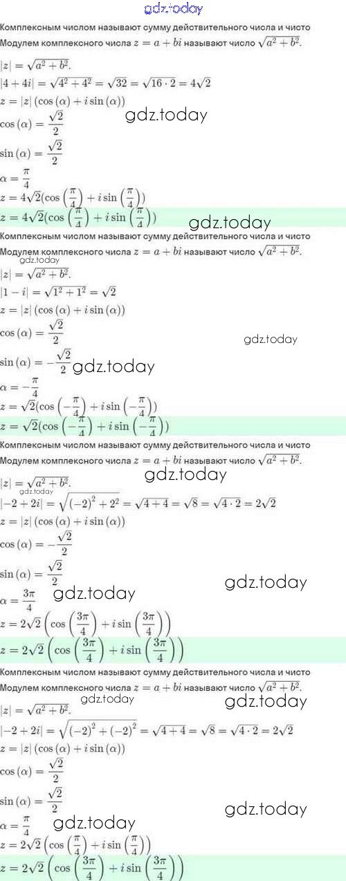 Ответы к Решение. §34. Тригонометрическая формула записи комплексного числа 34.22 Задачнику по Алгебре для 10 класса Мордкович, Семёнов Базовый и углубленный уровень Мнемозина 2017