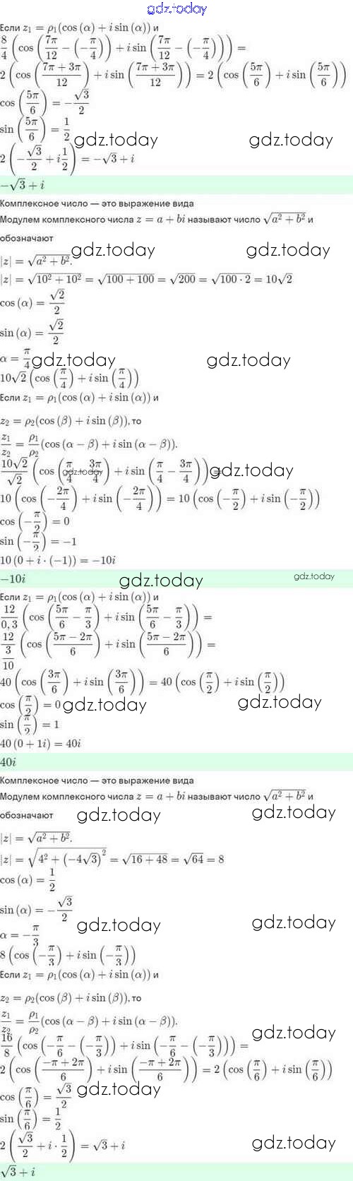 Ответы к Решение. §34. Тригонометрическая формула записи комплексного числа 34.30 Задачнику по Алгебре для 10 класса Мордкович, Семёнов Базовый и углубленный уровень Мнемозина 2017