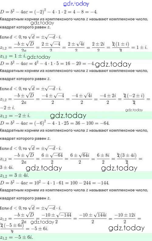 На страницах сайта gdz.today вы найдете учебный и вспомогательный материал, направленный на улучшения знаний школьной программы. ГДЗ - онлайн мир знаний Решение. §35. Комплексные числа и квадратные уравнения 35.7 Задачнику по Алгебре для 10 класса Мордкович, Семёнов Базовый и углубленный уровень Мнемозина 2017