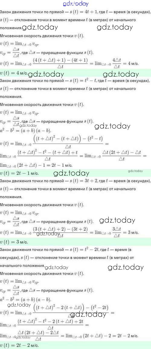 Ответы к Решение. §40. Определение производной 40.4 Задачнику по Алгебре для 10 класса Мордкович, Семёнов Базовый и углубленный уровень Мнемозина 2017