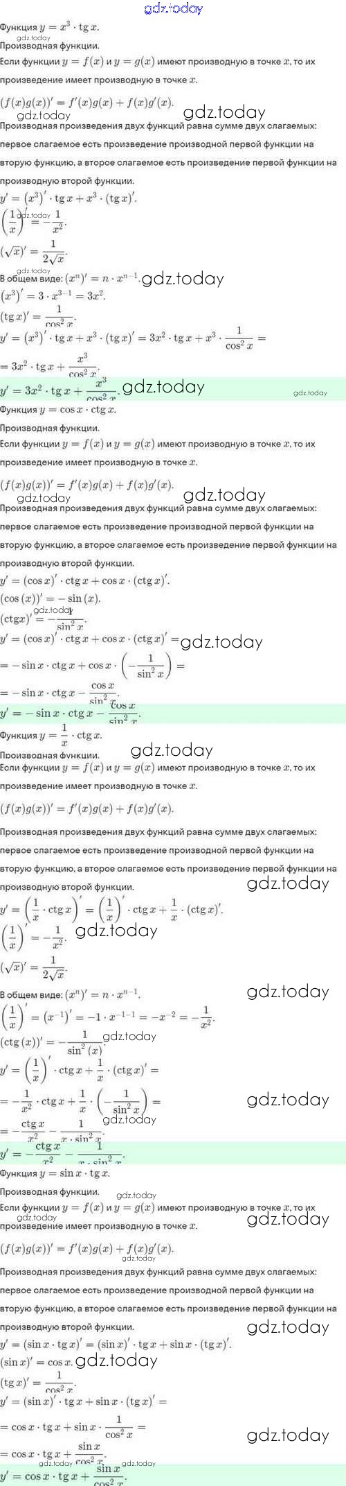 Ответы к Решение. §41. Вычисление производных 41.16 Задачнику по Алгебре для 10 класса Мордкович, Семёнов Базовый и углубленный уровень Мнемозина 2017