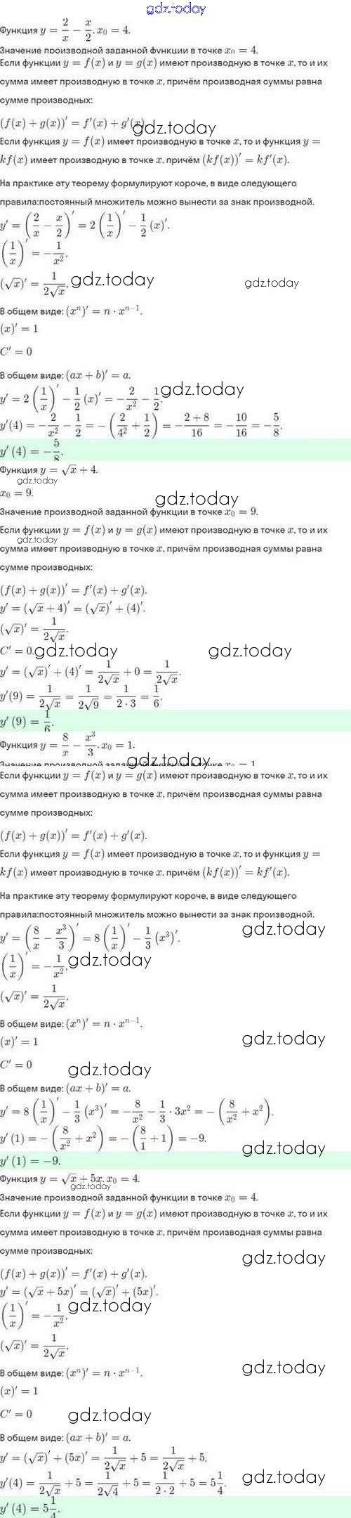 Ответы к Решение. §41. Вычисление производных 41.26 Задачнику по Алгебре для 10 класса Мордкович, Семёнов Базовый и углубленный уровень Мнемозина 2017
