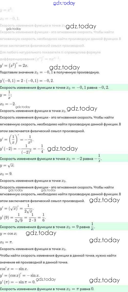 Ответы к Решение. §41. Вычисление производных 41.33 Задачнику по Алгебре для 10 класса Мордкович, Семёнов Базовый и углубленный уровень Мнемозина 2017