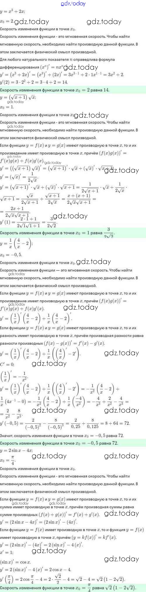 Ответы к Решение. §41. Вычисление производных 41.34 Задачнику по Алгебре для 10 класса Мордкович, Семёнов Базовый и углубленный уровень Мнемозина 2017