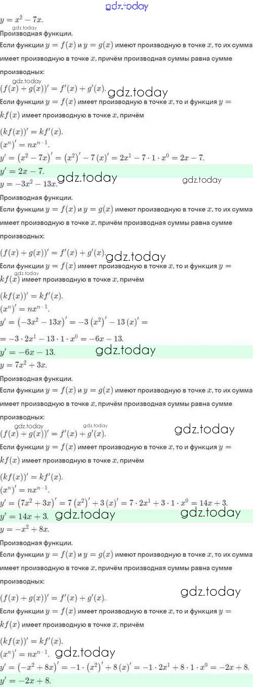 Ответы к Решение. §41. Вычисление производных 41.5 Задачнику по Алгебре для 10 класса Мордкович, Семёнов Базовый и углубленный уровень Мнемозина 2017
