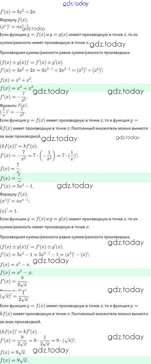 Ответы к Решение. §41. Вычисление производных 41.59 Задачнику по Алгебре для 10 класса Мордкович, Семёнов Базовый и углубленный уровень Мнемозина 2017