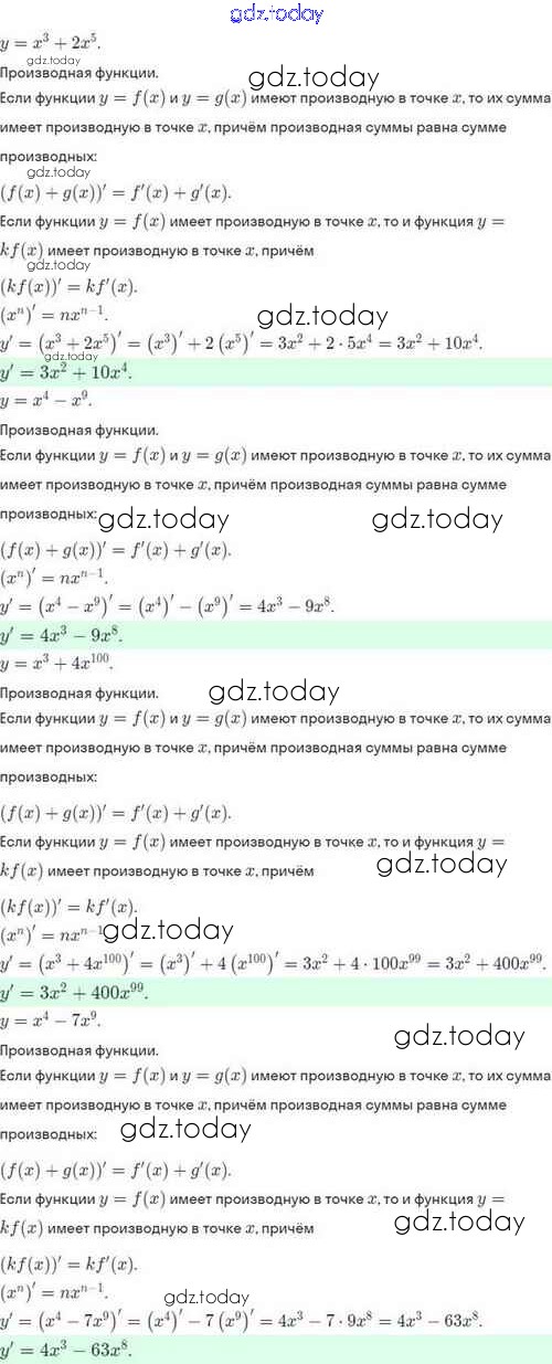 Ответы к Решение. §41. Вычисление производных 41.6 Задачнику по Алгебре для 10 класса Мордкович, Семёнов Базовый и углубленный уровень Мнемозина 2017